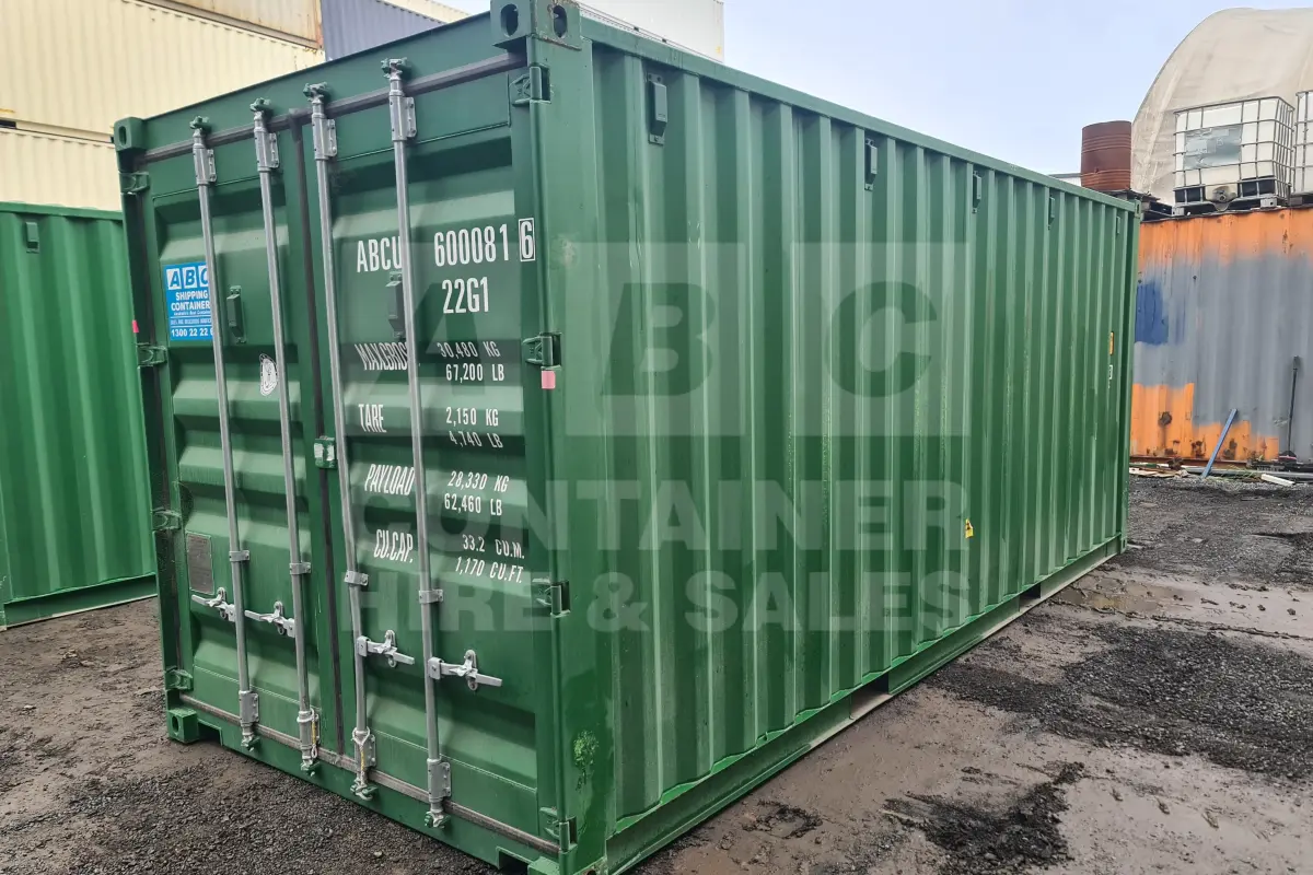 Rank 10 out of 10 new build green 20' Standard Height Steel Container (with doors one end only) in Brisbane. (ABCU6000816)