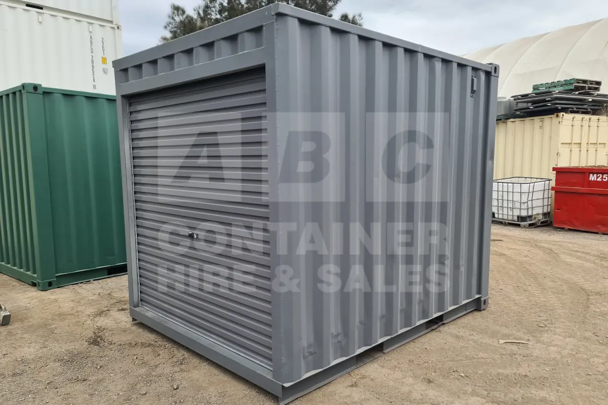 Rank 4 out of 10 used grey 10' Roller Door Budget Steel Container (2 Corner Posts - Cut-n-shut) in Brisbane. (ROLU2512201)