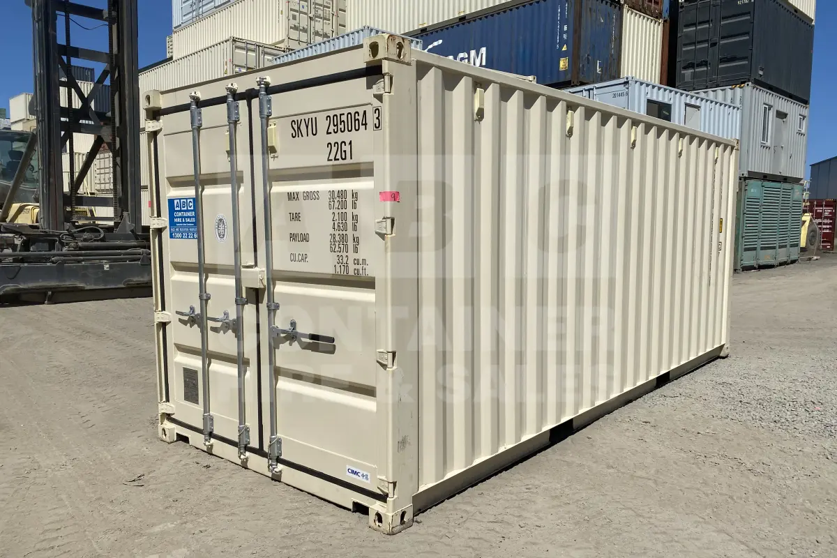 Rank 9 out of 10 new build cream 20' Standard Height Steel Container (with doors one end only) in Brisbane. (SKYU2950643)