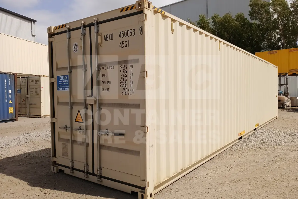 Rank 10 out of 10 new build cream 40 foot high cube shipping container in Brisbane. (ABXU4500539)