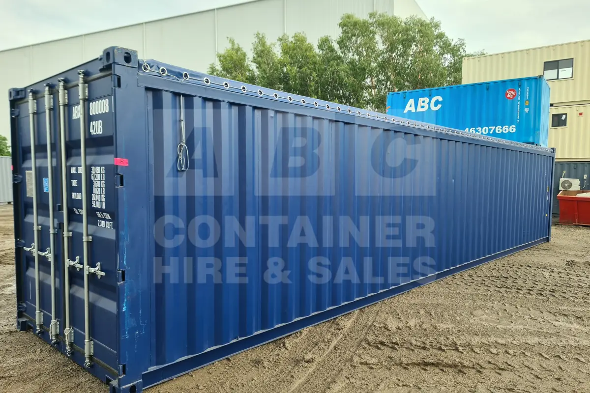 Rank 8 out of 10 new build blue 40 foot standard height open top container (tarp and wire) timber floor in Brisbane. (ABXU8000085)