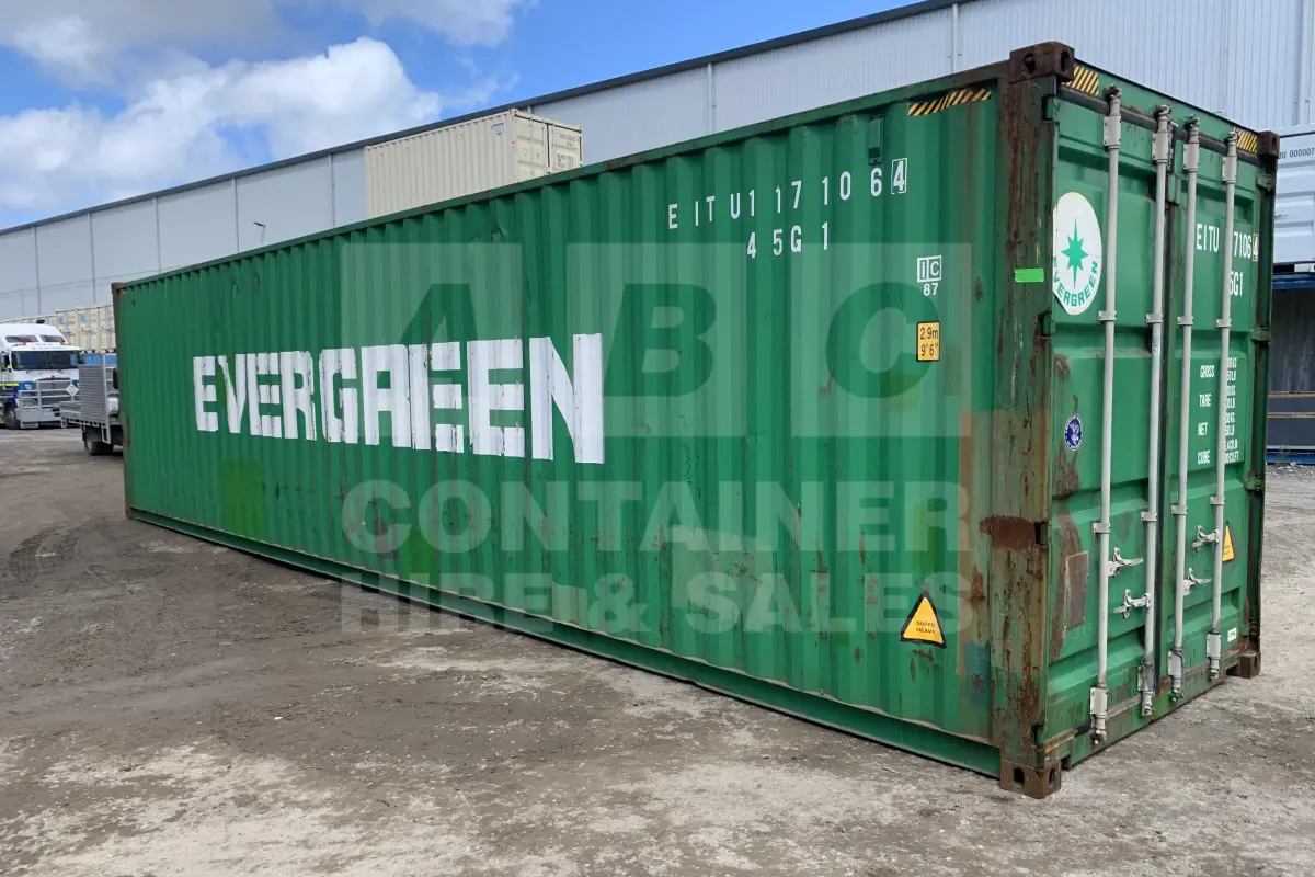 Rank 4 out of 10 used green 40 foot high cube shipping container in Brisbane. (EITU1171064)