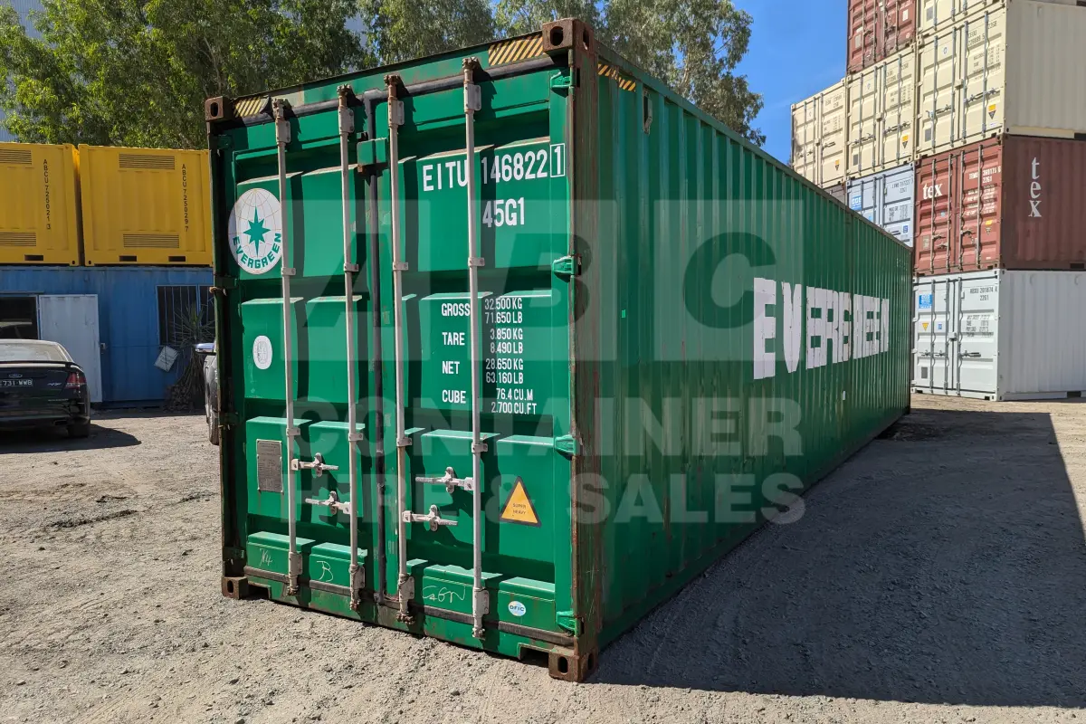 Rank 4 out of 10 used green 40 foot high cube shipping container in Brisbane. (EITU1468221)