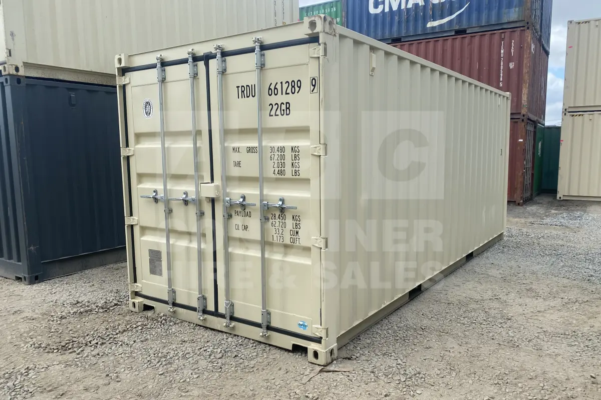 Rank 9 out of 10 new build cream 20' Standard Height Steel Container (with doors one end only) in Brisbane. (TRDU6612899)