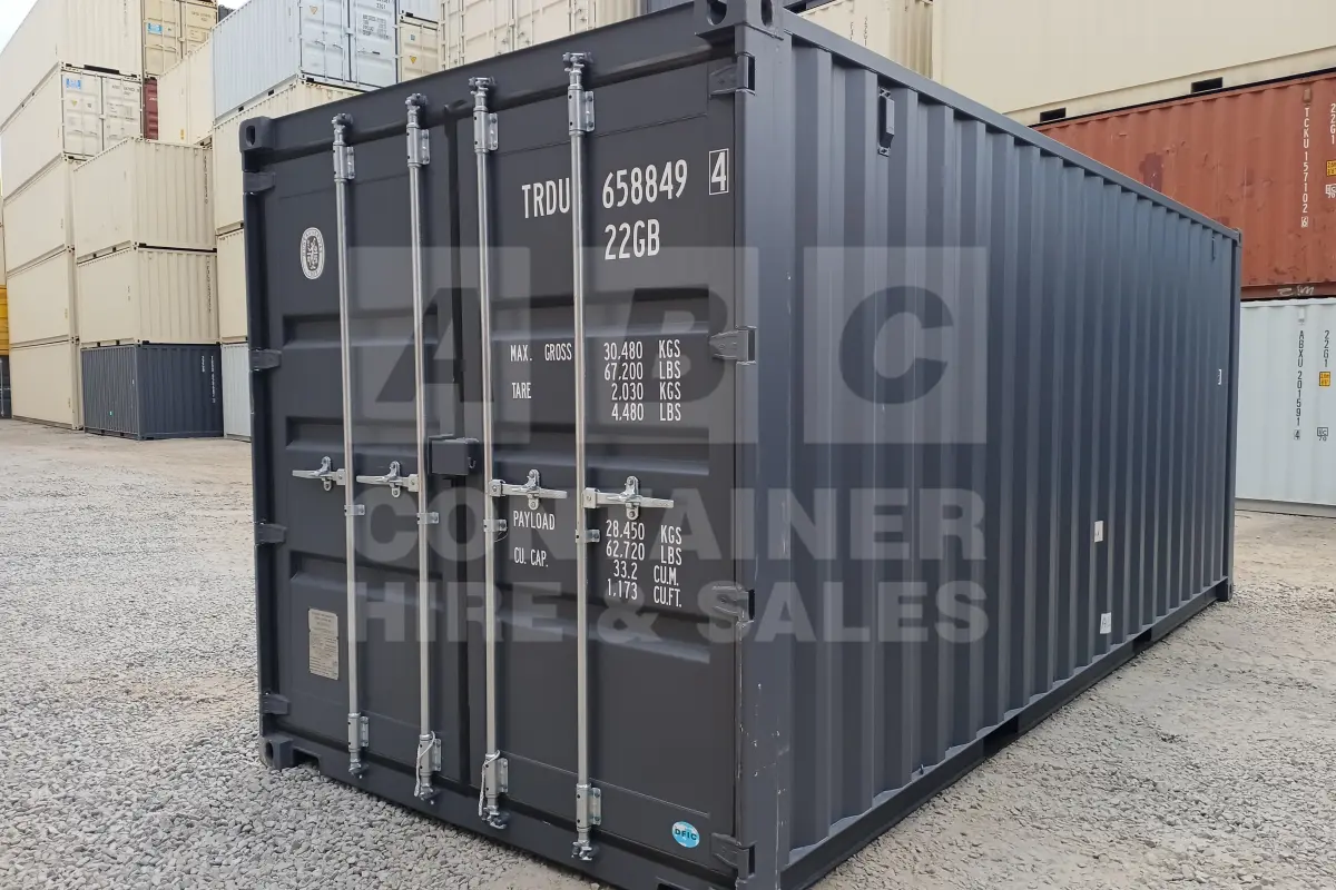 Rank 10 out of 10 new build grey 20' Standard Height Steel Container (with doors one end only) in Brisbane. (TRDU6588494)
