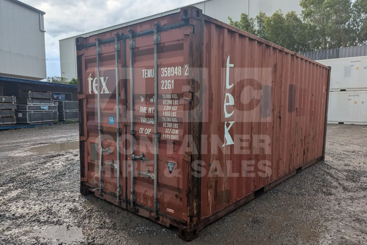 Rank 3 out of 10 used red 20' Standard Height Steel Container (with doors one end only) in Brisbane. (TEMU3589482)