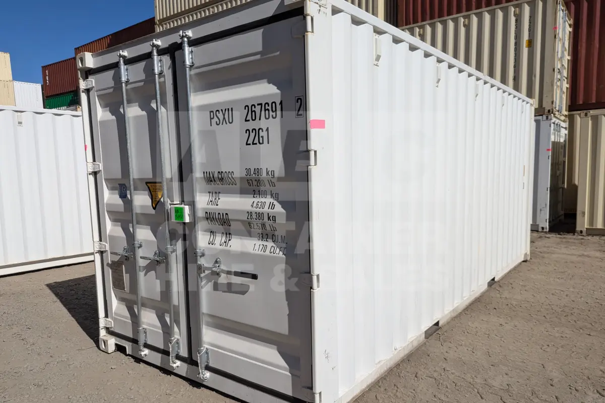 Rank 10 out of 10 new build white 20' Standard Height Steel Container (with doors one end only) in Brisbane. (PSXU2676912)
