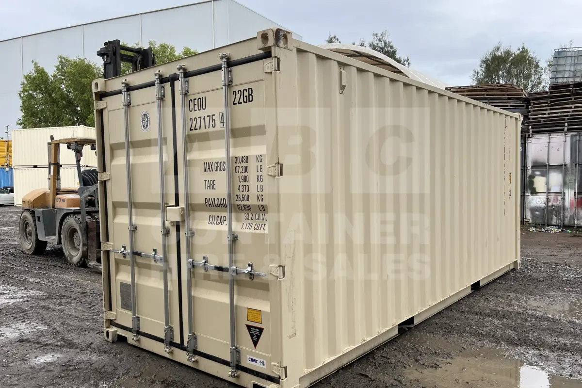 Rank 8 out of 10 new build cream 20' Standard Height Steel Container (with doors one end only) in Brisbane. (CEOU2271754)