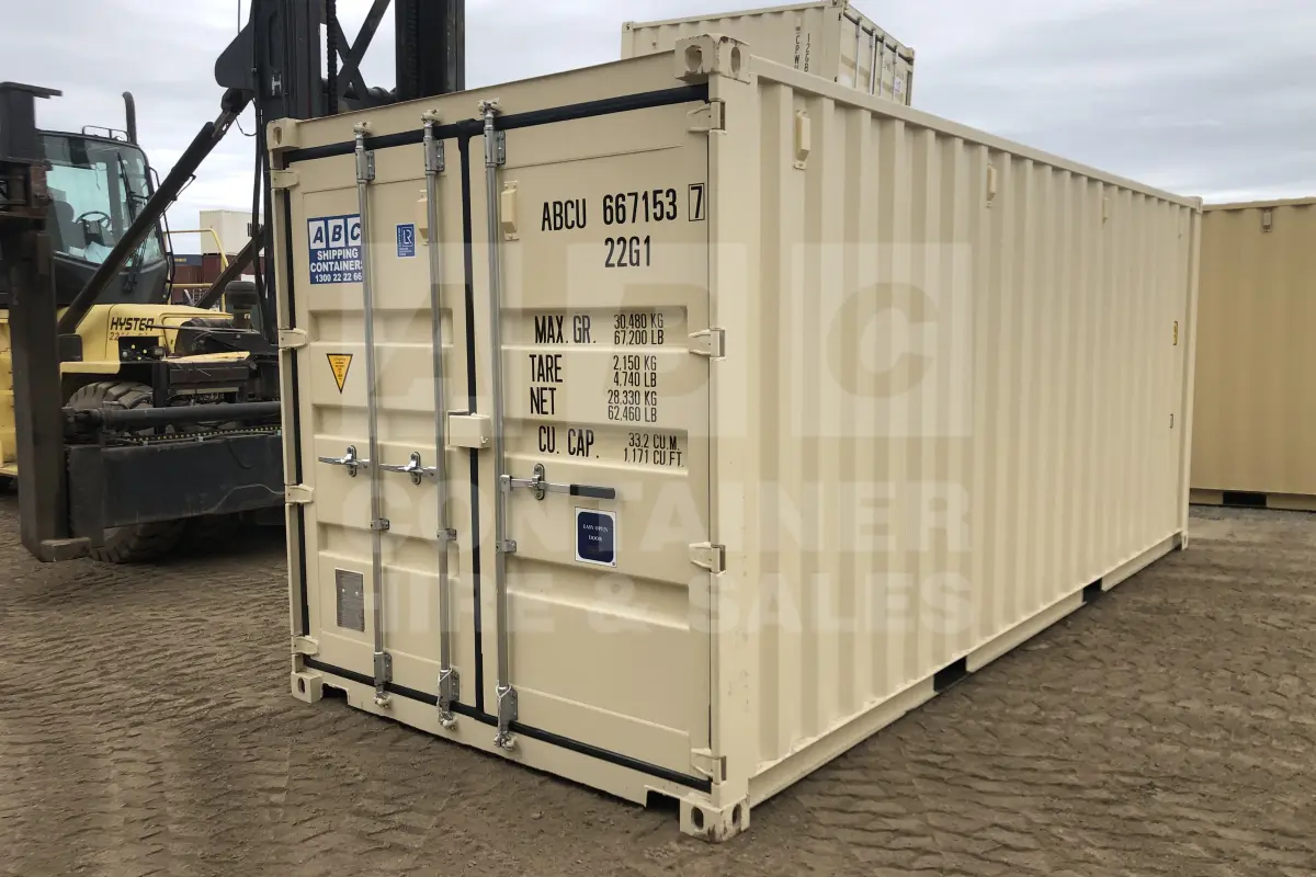 Rank 7 out of 10 used cream 20' Standard Height Steel Container (with doors one end only) in Brisbane. (ABCU6671537)
