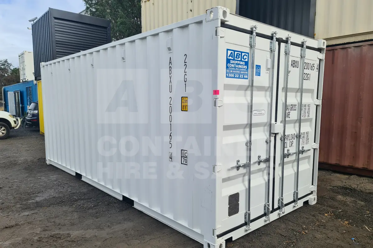 Rank 9 out of 10 new build white 20' Standard Height Steel Container (with doors one end only) in Cairns. (ABXU2001654)