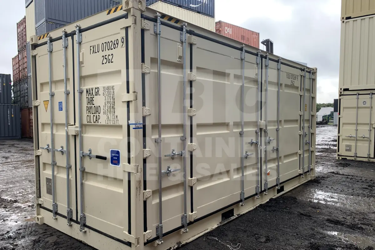 Rank 8 out of 10 new build cream 20 foot high cube full side opening (RHS) shipping container in Cairns. (FXLU0702699)