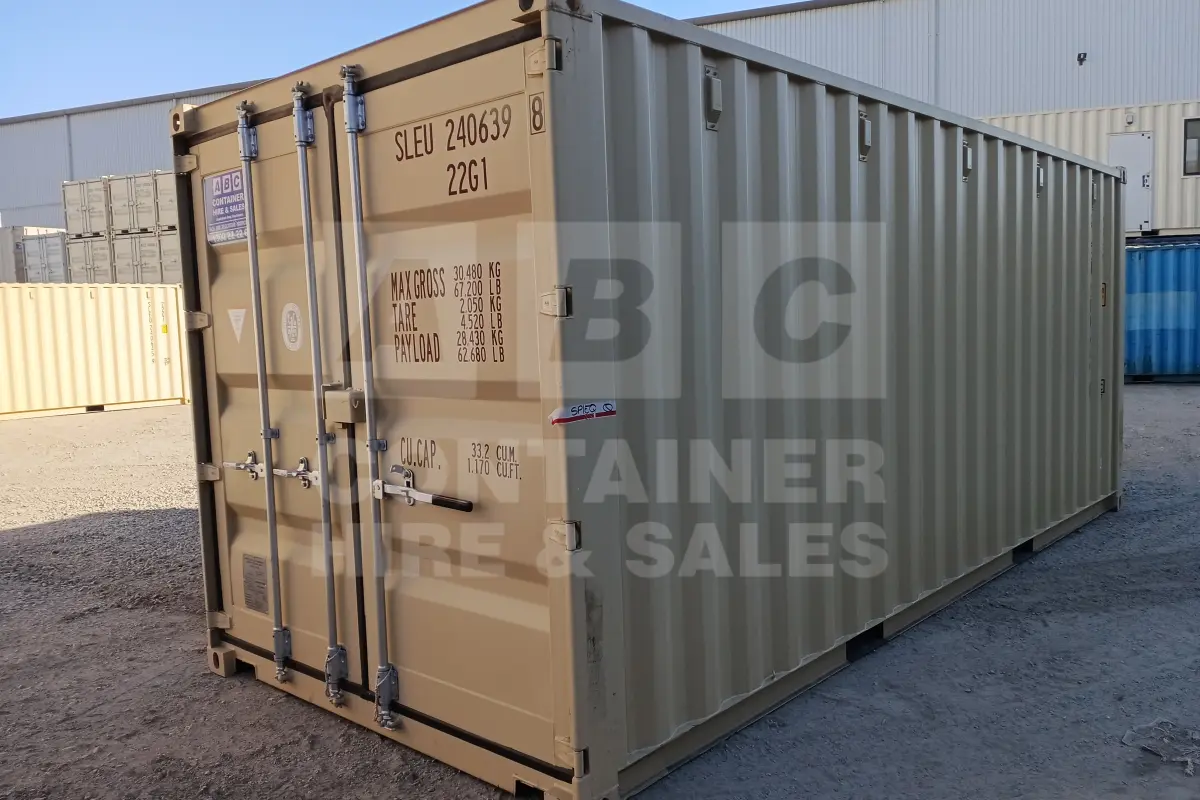 Rank 8 out of 10 new build beige 20' Standard Height Steel Container (with doors one end only) in Cairns. (SLEU2406398)