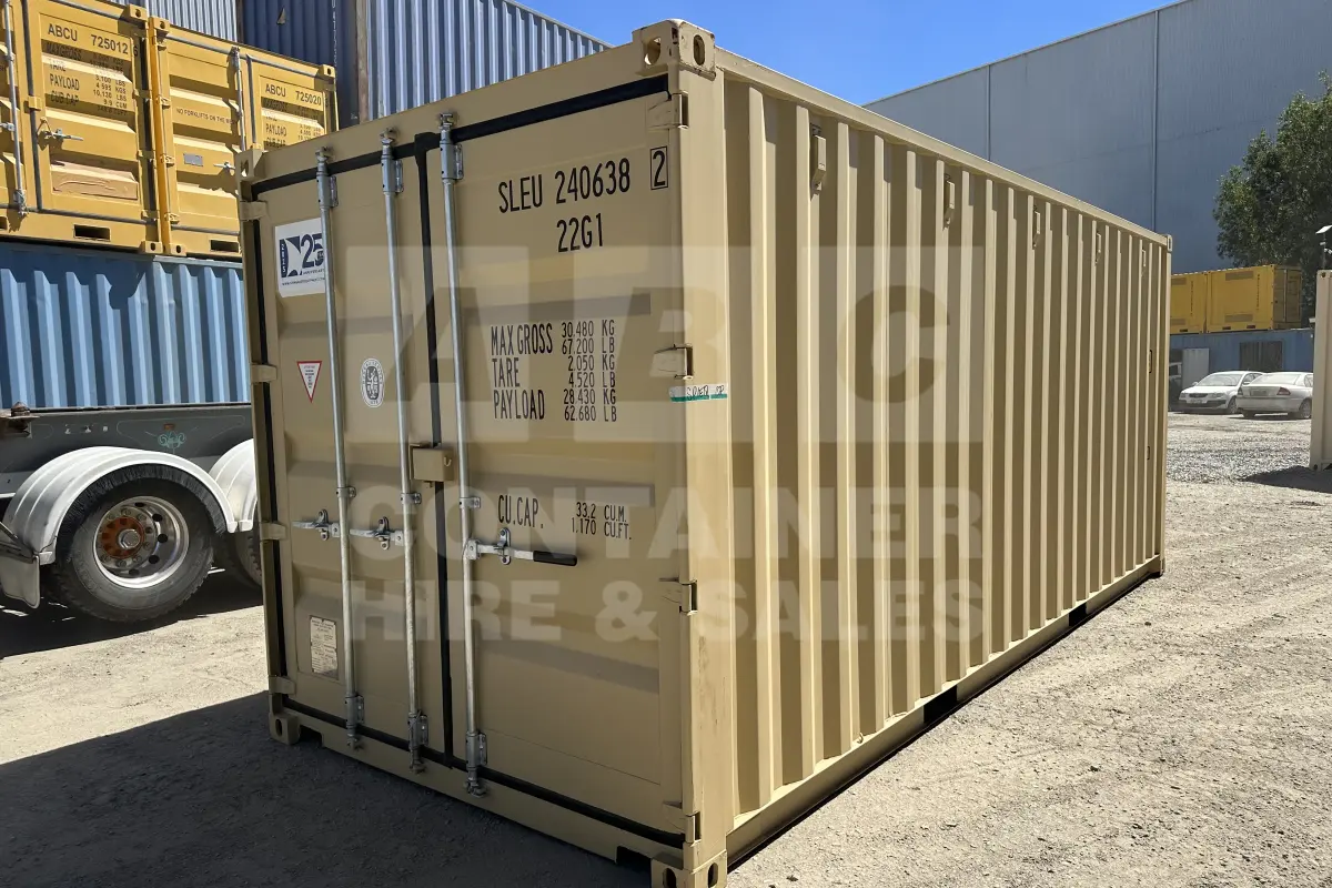 Rank 8 out of 10 new build beige 20' Standard Height Steel Container (with doors one end only) in Cairns. (SLEU2406382)