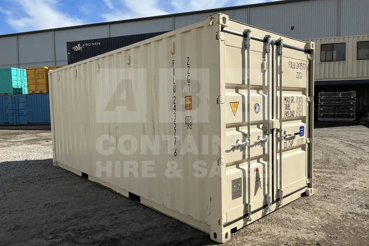 Rank 9 out of 10 new build cream 20' Standard Height Steel Container (with doors one end only) in Cairns. (FXLU2435776)