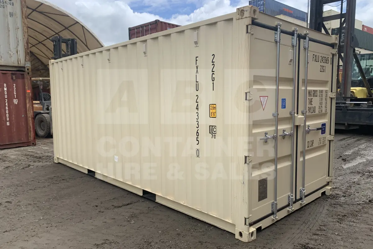 Rank 8 out of 10 new build cream 20' Standard Height Steel Container (with doors one end only) in Cairns. (FXLU2433650)