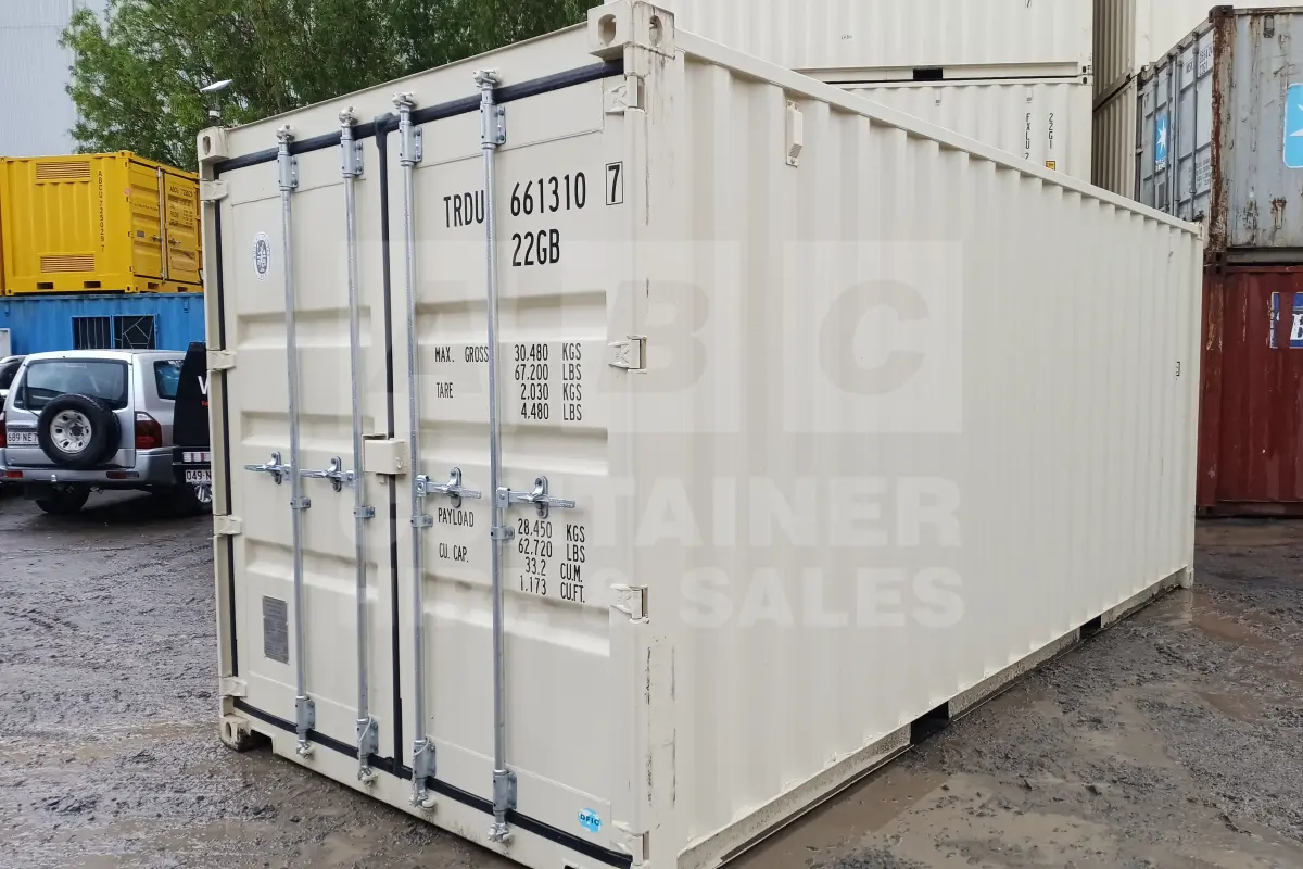 Rank 9 out of 10 new build cream 20' Standard Height Steel Container (with doors one end only) in Cairns. (TRDU6613107)