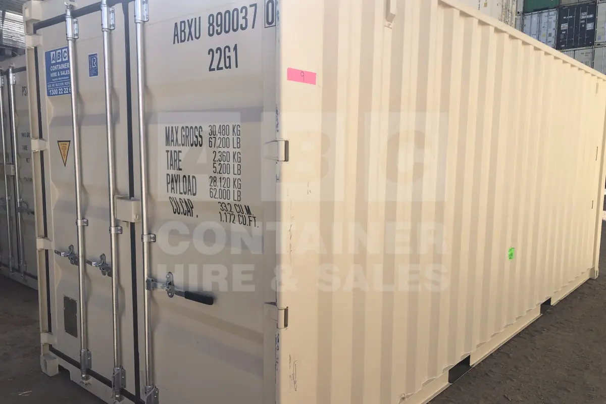 Rank 9 out of 10 new build cream 20' Standard Height Steel Container (Steel Floor, Doors One End) in Childers. (ABXU8900370)