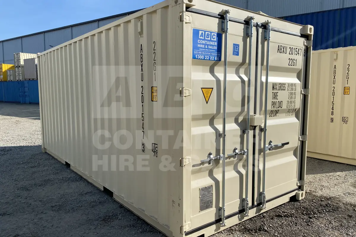Rank 10 out of 10 new build cream 20' Standard Height Steel Container (with doors one end only) in Gladstone. (ABXU2015473)