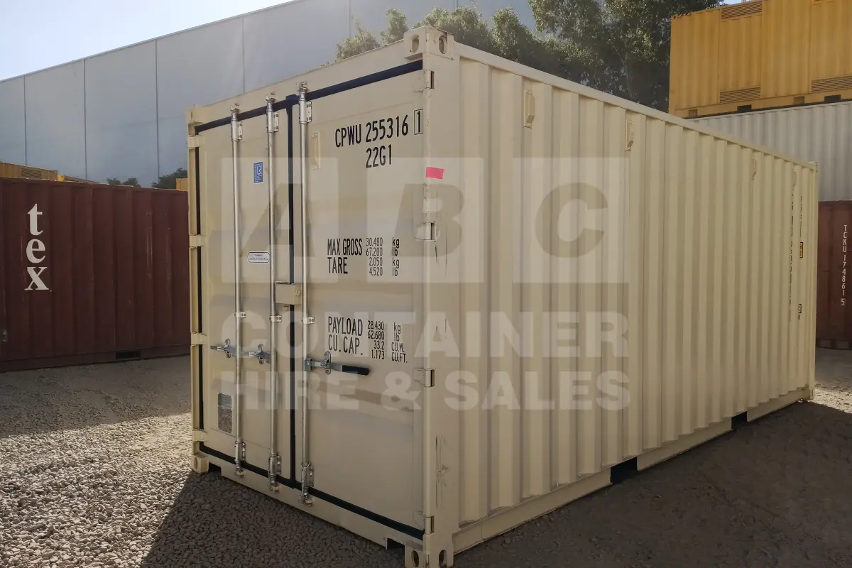 Rank 9 out of 10 new build cream 20' Standard Height Steel Container (with doors one end only) in Gympie. (CPWU2553161)