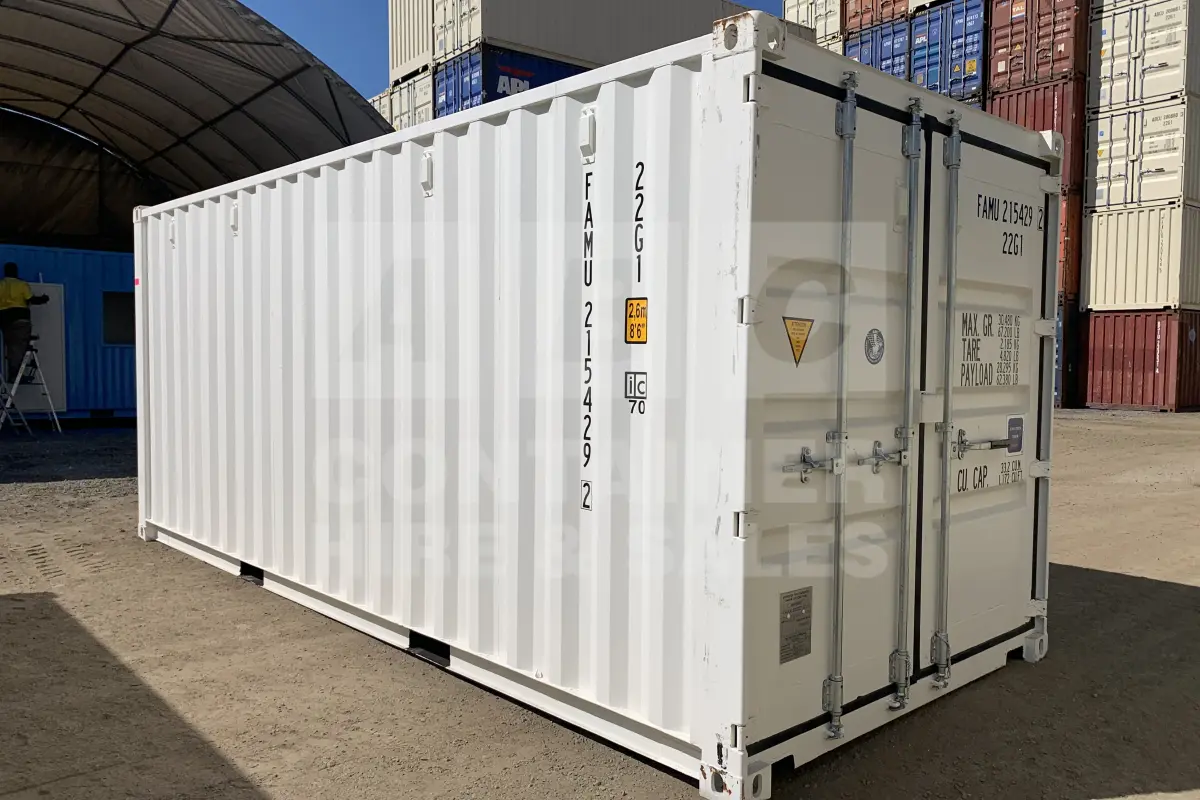 Rank 9 out of 10 new build white 20' Standard Height Steel Container (with doors one end only) in Lismore. (FAMU2154292)