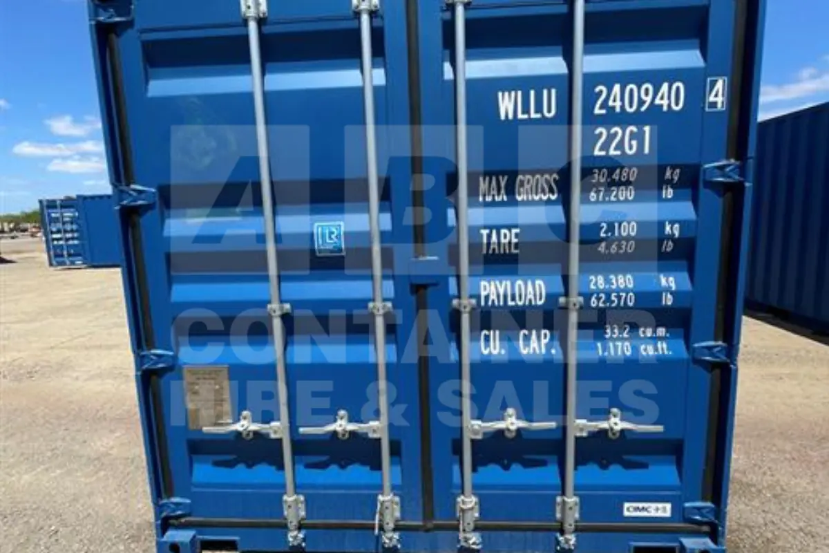 Rank 10 out of 10 new build blue 20' Standard Height Steel Container (with doors one end only) in Rockhampton. (WLLU2409404)