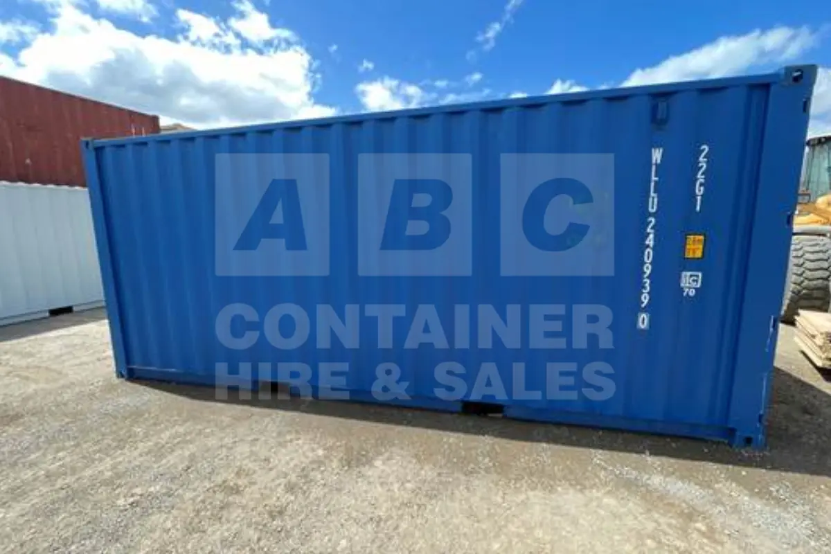 Rank 10 out of 10 new build blue 20' Standard Height Steel Container (with doors one end only) in Rockhampton. (WLLU2409390)