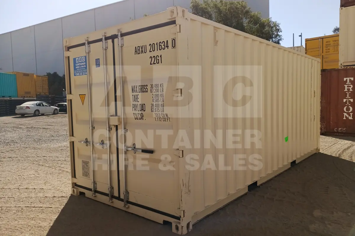 Rank 9 out of 10 new build cream 20' Standard Height Steel Container (with doors one end only) in Rockhampton. (ABXU2016340)