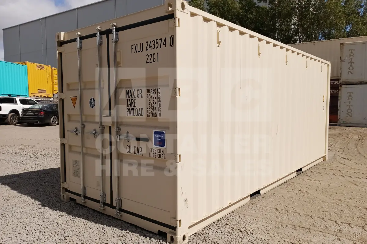 Rank 8 out of 10 new build cream 20' Standard Height Steel Container (with doors one end only) in Rockhampton. (FXLU2435740)