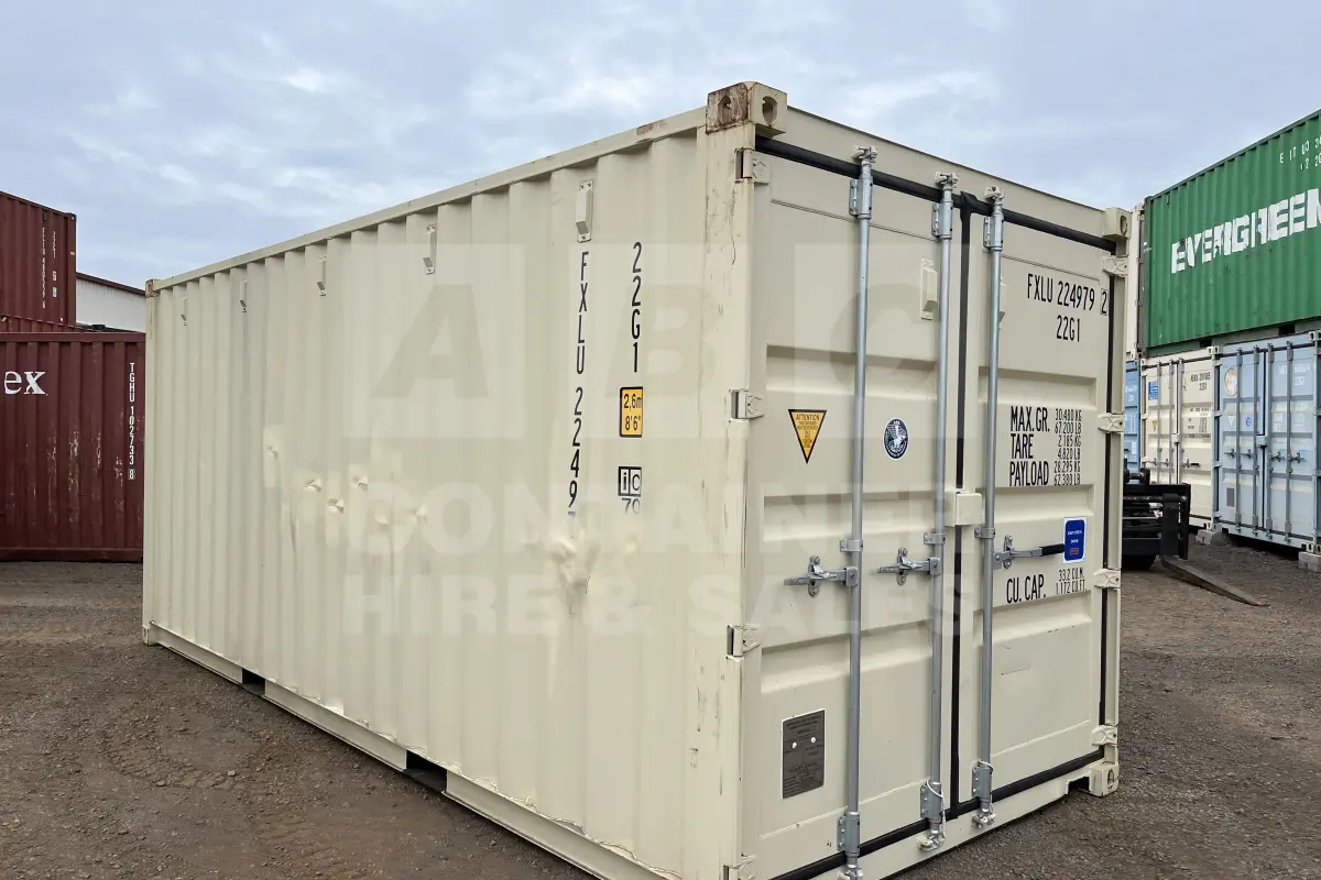Rank 6 out of 10 used cream 20' Standard Height Steel Container (with doors one end only) in Toowoomba. (FXLU2249792)