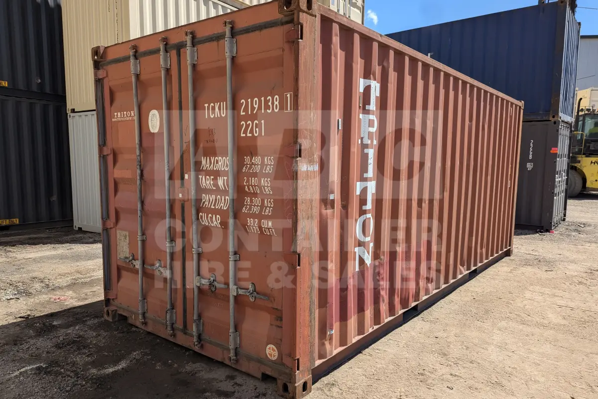 Rank 3 out of 10 used brown 20' Standard Height Steel Container (with doors one end only) in Toowoomba. (TCKU2191381)