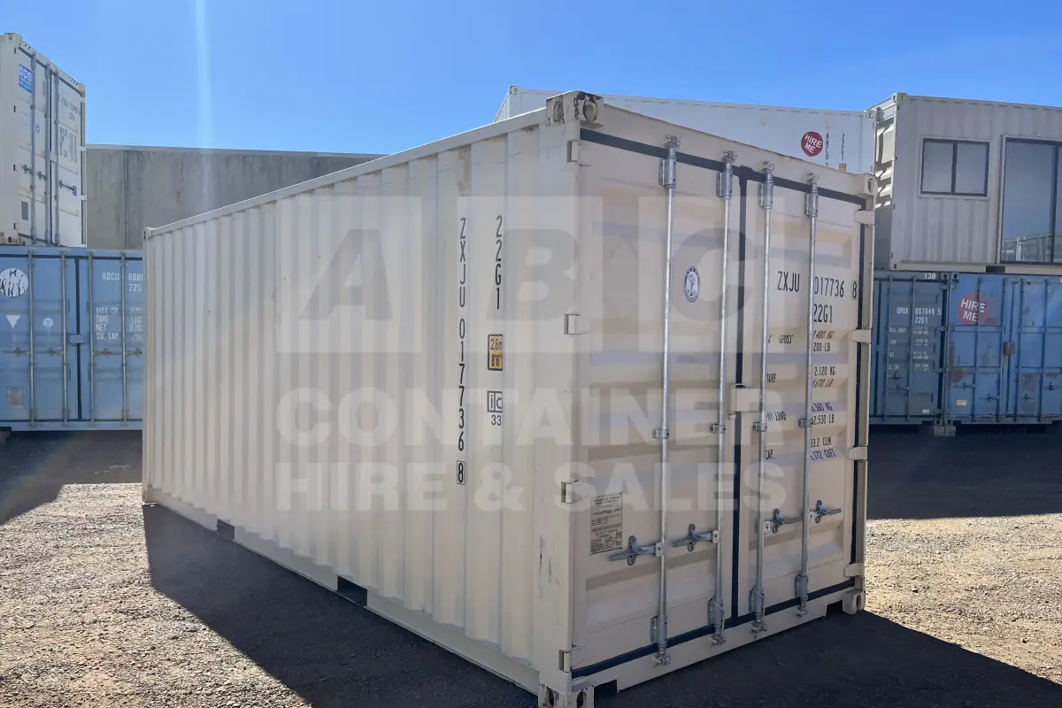 Rank 8 out of 10 new build cream 20' Standard Height Steel Container (with doors one end only) in Toowoomba. (ZXJU0177368)