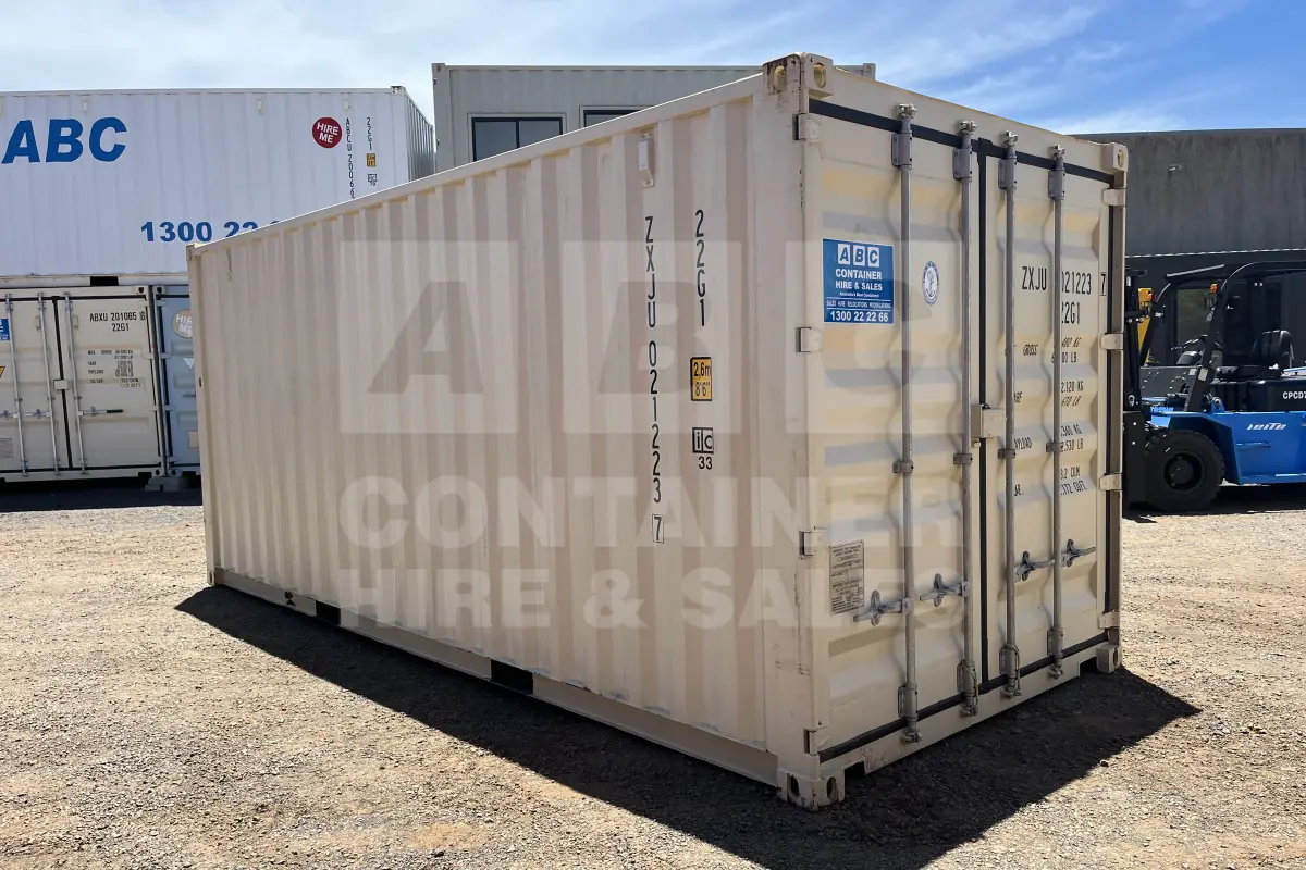 Rank 9 out of 10 new build cream 20' Standard Height Steel Container (with doors one end only) in Toowoomba. (ZXJU0212237)