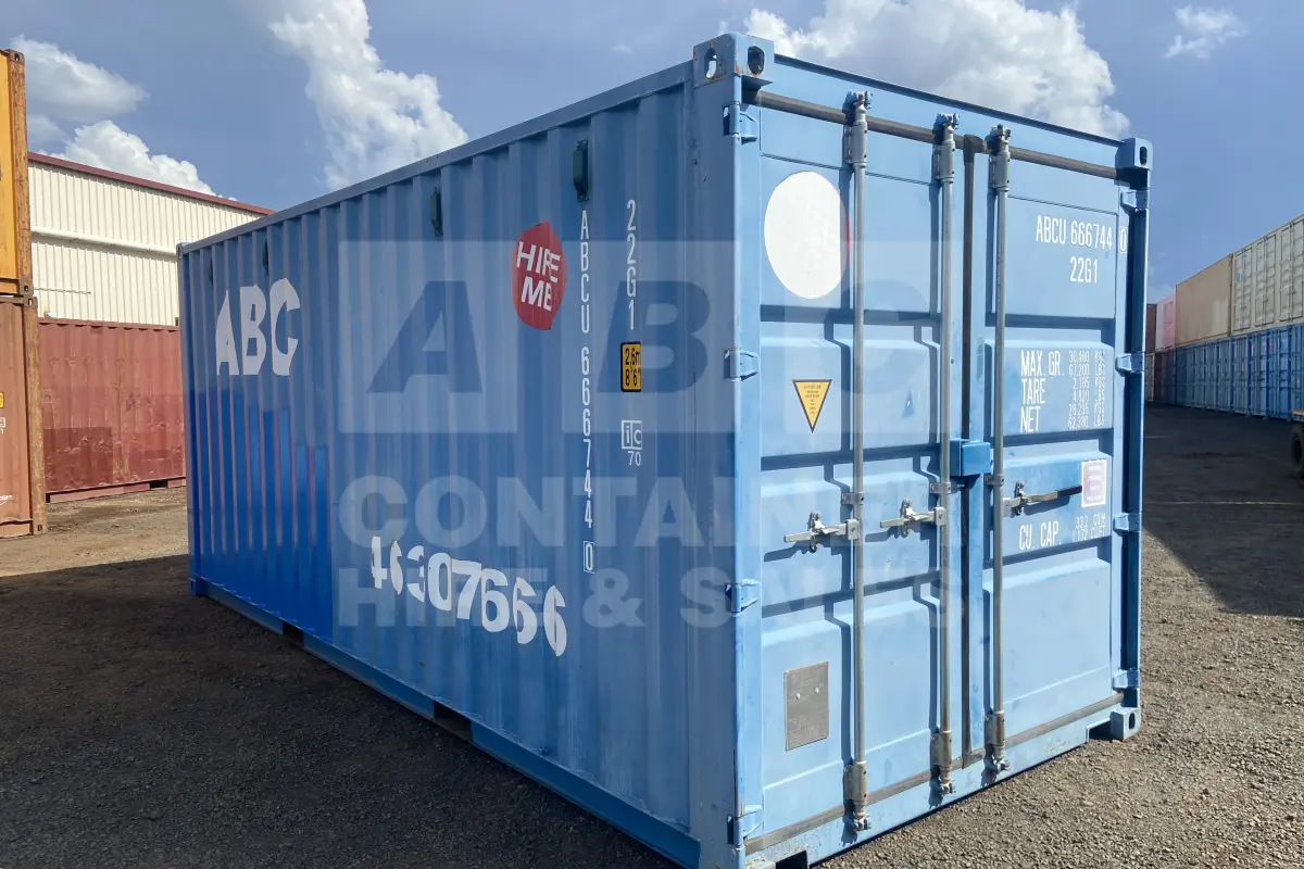 Rank 7 out of 10 used blue 20' Standard Height Steel Container (with doors one end only) in Toowoomba. (ABCU6667440)