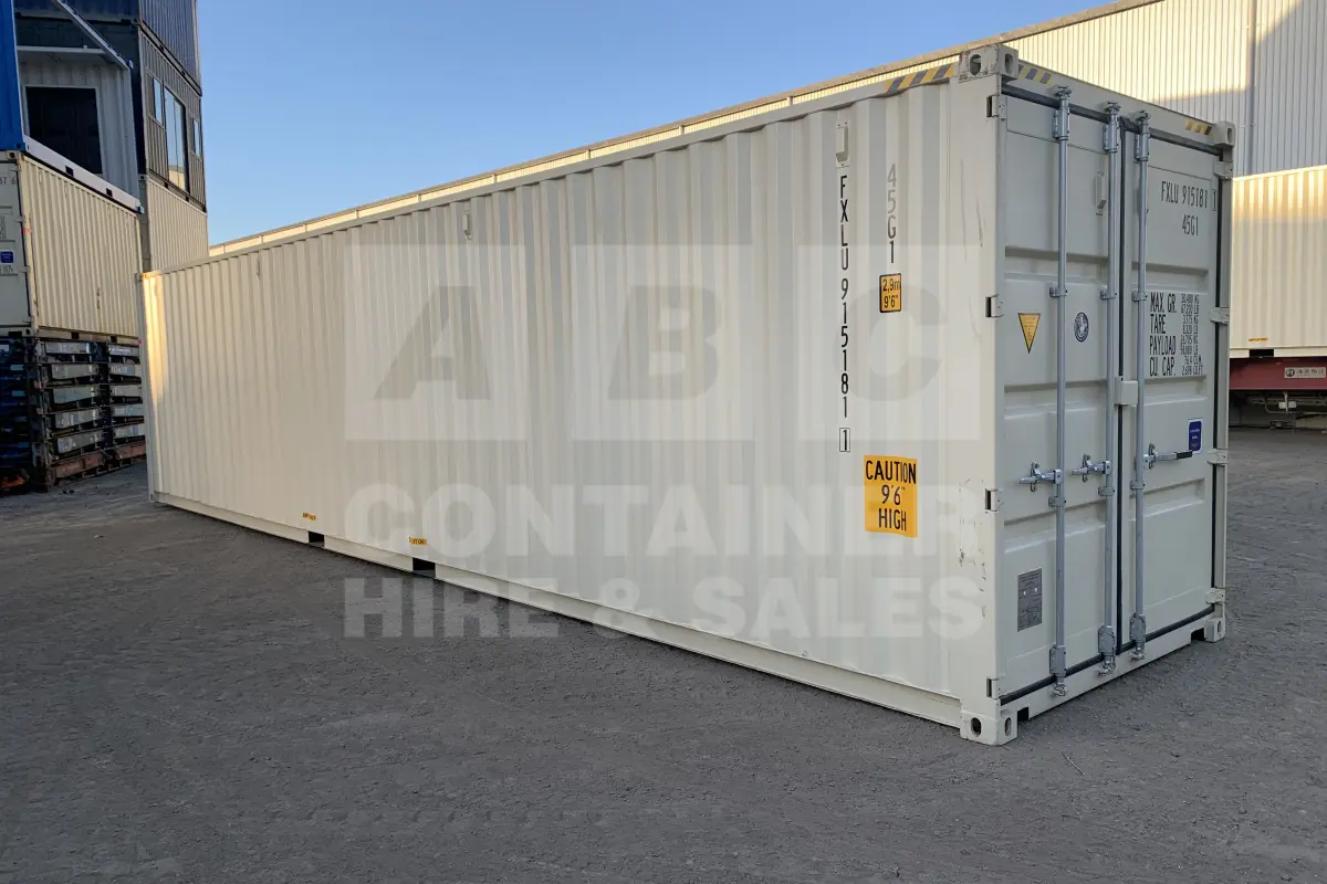 Rank 9 out of 10 new build cream 40 foot high cube shipping container in Townsville. (FXLU9151811)